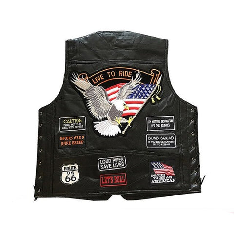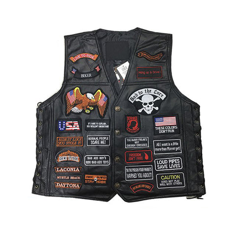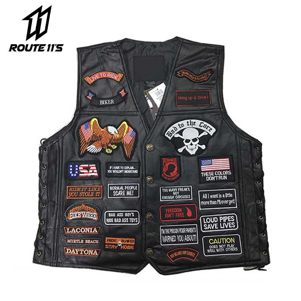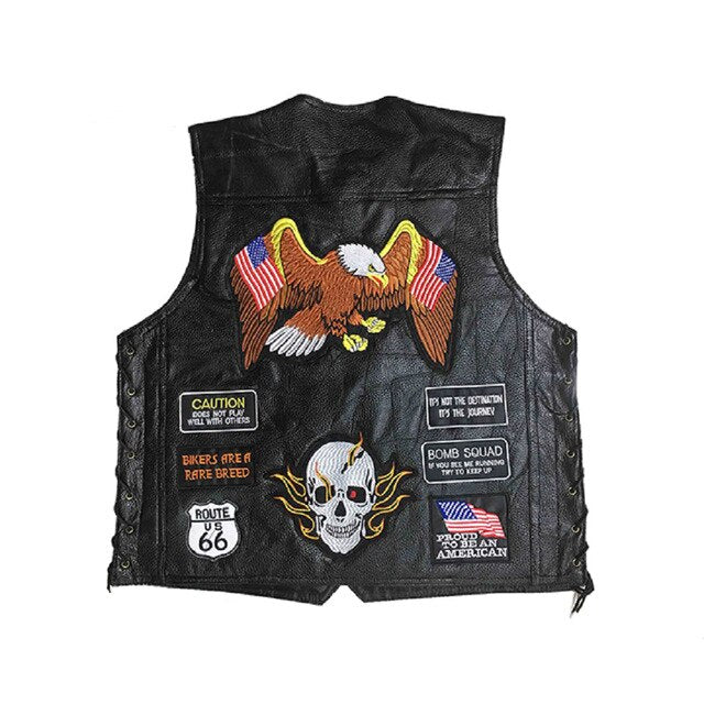 Genuine Leather Motorcycle Vest Men Punk Retro Classic Style